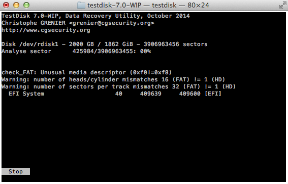 Wenn ich Mac statt EFI auswähle, bekomme ich bei der Analyse: Bad Mac partition, invalid block0 signature – read_part_mac: bad DPME signature.