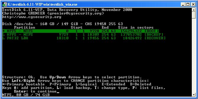 Ich habe schon mit Testdisk versucht Informationen zu sammeln