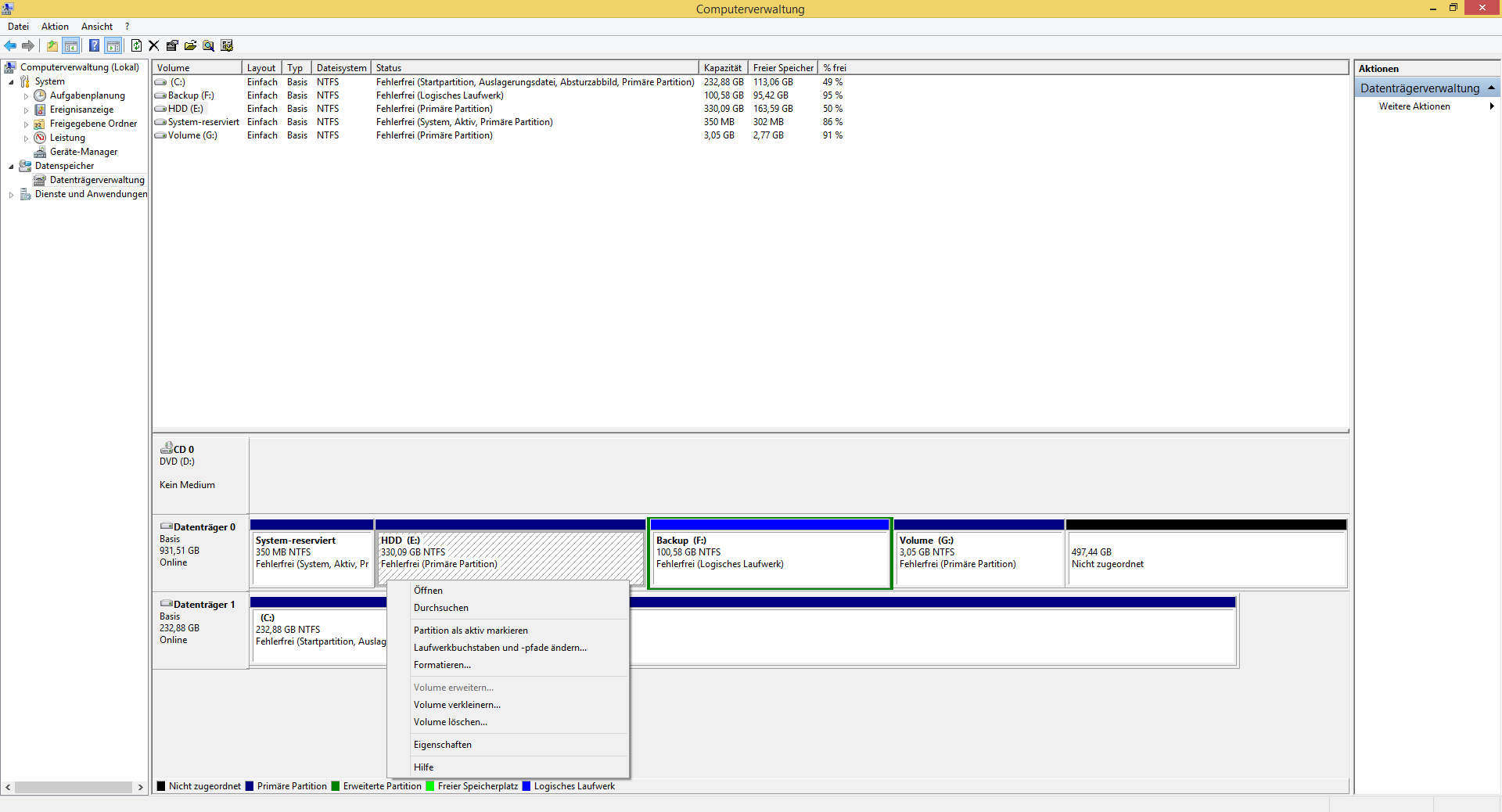 Ich möchte gerne eine meiner Partitionen vergrößern, jedoch wenn ich auf "Datenträgerverwaltung" gehe und dort auf HDD: klicke ist "Volume vergrößern" nicht auswählbar. Darauf hin hab ich eine weitere Partition erstellt um zu testen ob es dort geht, ja es geht. Was muss ich machen um HDD: zu vergrößern. Es handelt sich hierbei immer um die gleiche HDD.