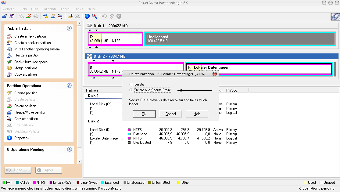 PartitionMagic Anzeige + Schritte mit Testdisk