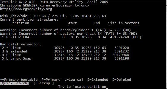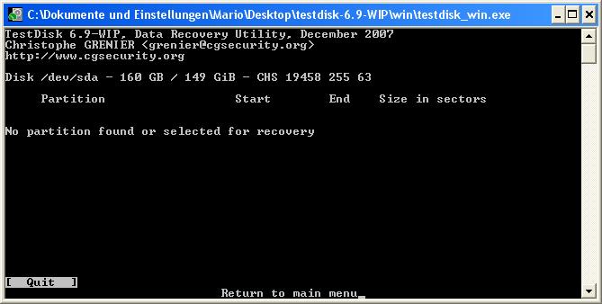 Ich würd gern diese Partition irgendwie wieder haben, schön wärs mit Daten, aber es wird mir nichtmal etwas mit Testdisk angezeigt