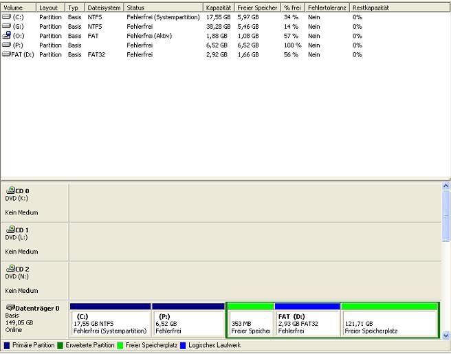 Meine Partition "Daten" und "VM" sind nicht mehr vorhanden. In der Datenträgerverwaltung geschaut und stellte fest das meine ehemals "Daten" keinen Laufwerksbuchstaben mehr und nun dort stehn 121 Freier Speicherplatz stehen hat, die "vm" ist total weg.