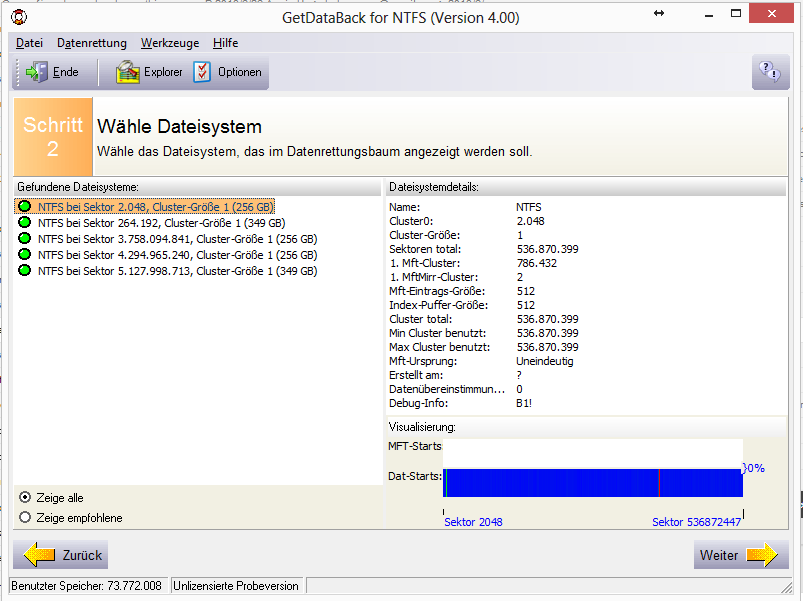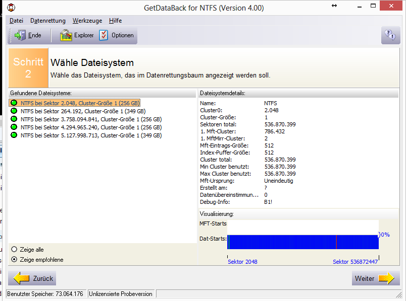 265568623 Zuordnungseinheiten auf dem Datenträger verfügbar