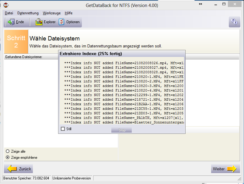 Verwaiste Datei Autraggeber (181899) wird in Verzeichnisdatei 5 wiederhergestell