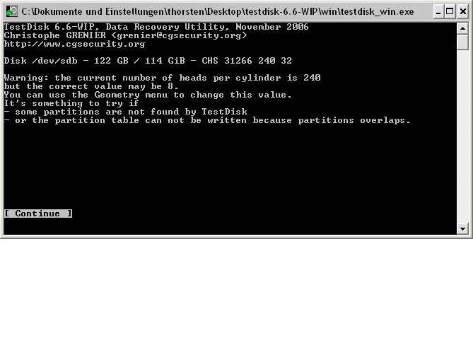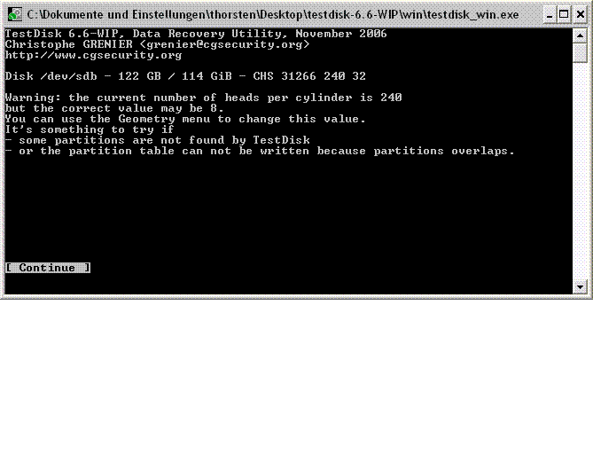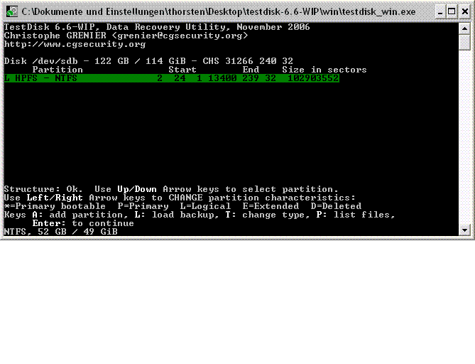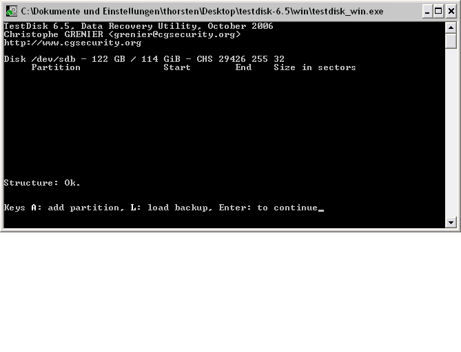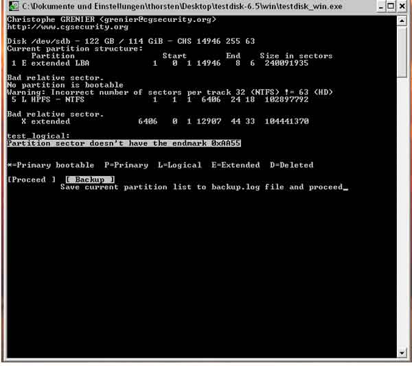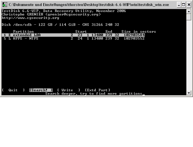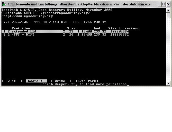 Du darfst dann Testdisk nicht beenden da du dann die Einstellungen verlierst.