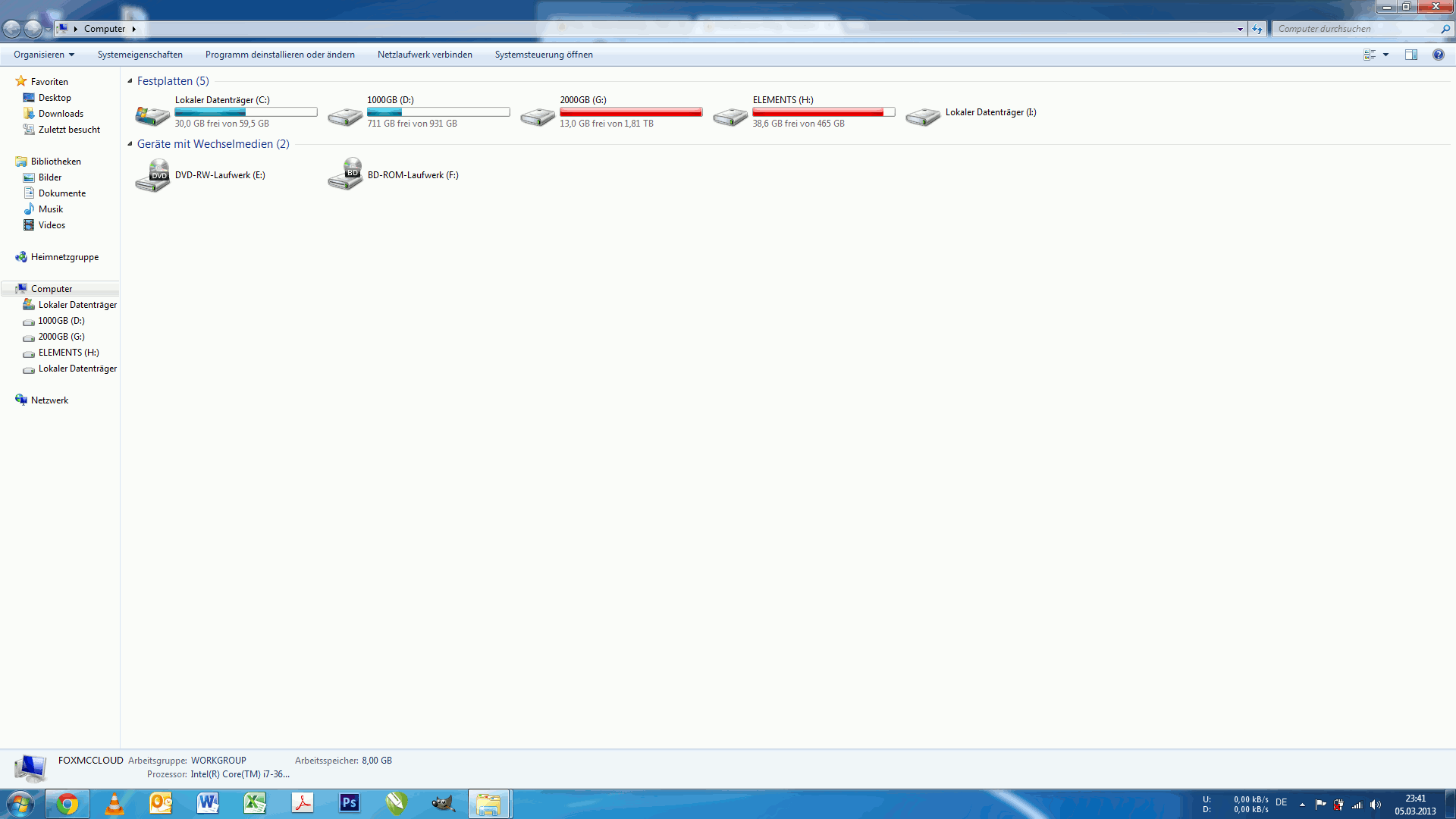 habe heute meinen ganzen Bilddaten auf meine 1TB Festplatte gelegt. Als ich auf diese am Nachmittag zugreifen wollte plötzlich dieser Arbeitsplatz (siehe Bild Festplatten).
