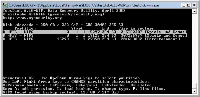 Lade Dir dazu mal Testdisk 6.10.