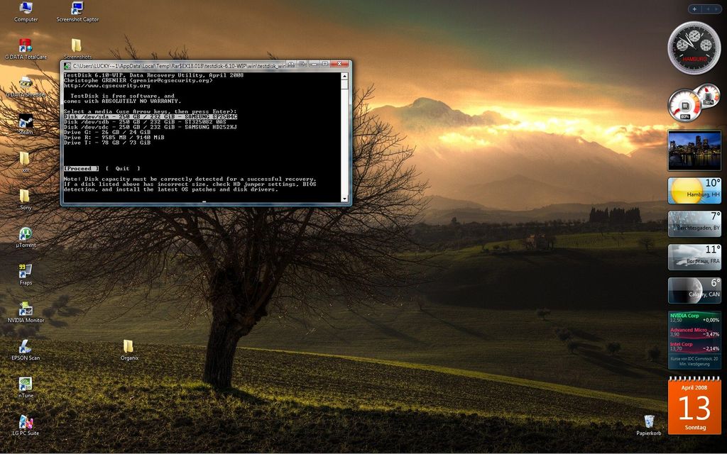 Wenn ich Testdisk ausführe wird keine meiner Festplatten angezeigt.