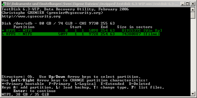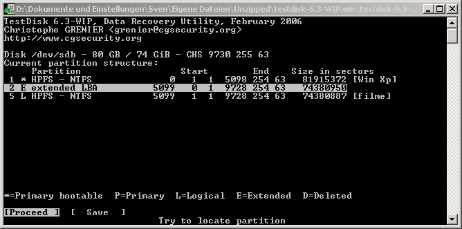 Also habe zwei 80 gb festplatten beide in zwei partitionen C meine daten d Win xp e meine frau und f filme musik und wichtige programme tools und so weiter leider ist aus unerklährlichen gründen die f partition nicht mehr mit ihrer bezeichnung zu sehen (filme) sondern nur noch als lokaler datenträger f.