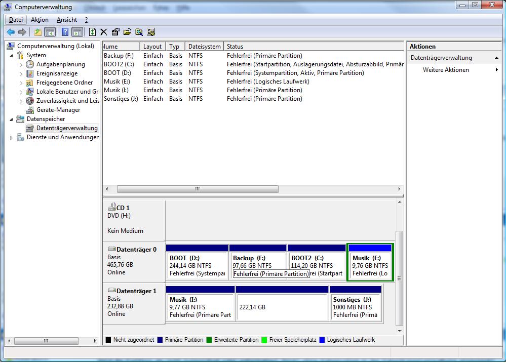 auf meiner externen Festplatte (Medion HDDrive2Go 250GB) sind drei Partitionen. Alle NTFS formatiert. So, nun habe ich die Festplatte unter Vista angeschlossen, doch es werden nur zwei Partitionen erkannt. Die dritte (~120GB) wird nicht angezeigt. Unter Windows XP funktioniert es aber ohne Probleme. Habt ihr eine Lösung für das Problem??