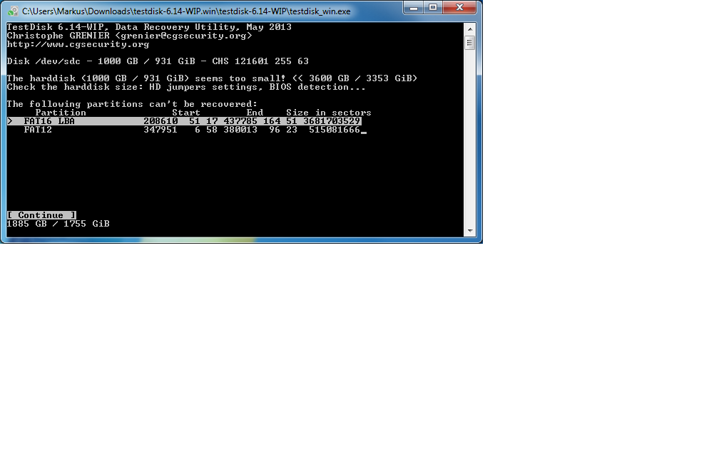 ich habe die Platte auf eine andere 1 TB Platte mit Linux dd... kopiert und habe nun auf dieser getestet. Komme aber leider nicht mehr weiter.