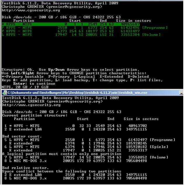 Dieses Bad Sector Count deutet nach Tante Google auf ein GeometrieProblem hin, eine Überprüfung dort zeigte mir aber die richtigen Werte an......