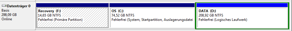 Unter Windows muss eine Partition, die vergrößert werden will, Unzugeordneten Speicherplatz direkt rechts daneben befinden.