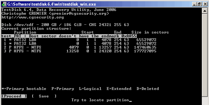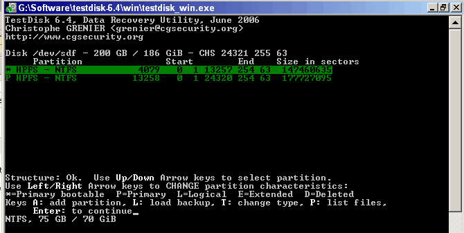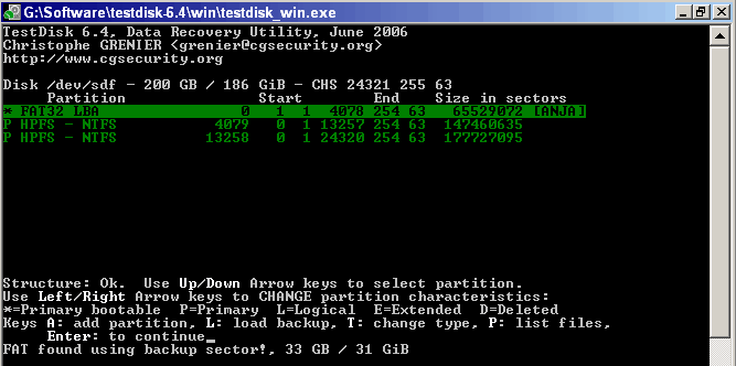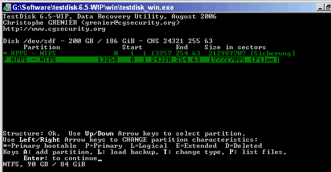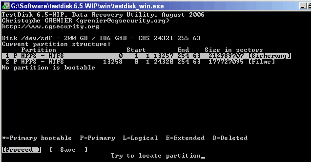 Übrigens kann man mit p die FAT32, nicht jedoch die NTFS Partitionen (Eingabe/Ausgabe Fehler) lesen.