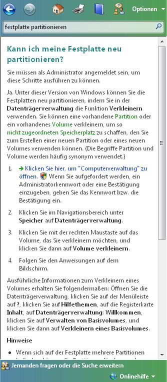 Nur leider geht dies unter Vista nicht, da Partition Magic 8, welches ich vorher unter XP genutzt habe, nicht mit Vista kompatibel ist. Hat jemand eine Alternative für mich? Oder weiß jemand sonst irgendwie Rat??