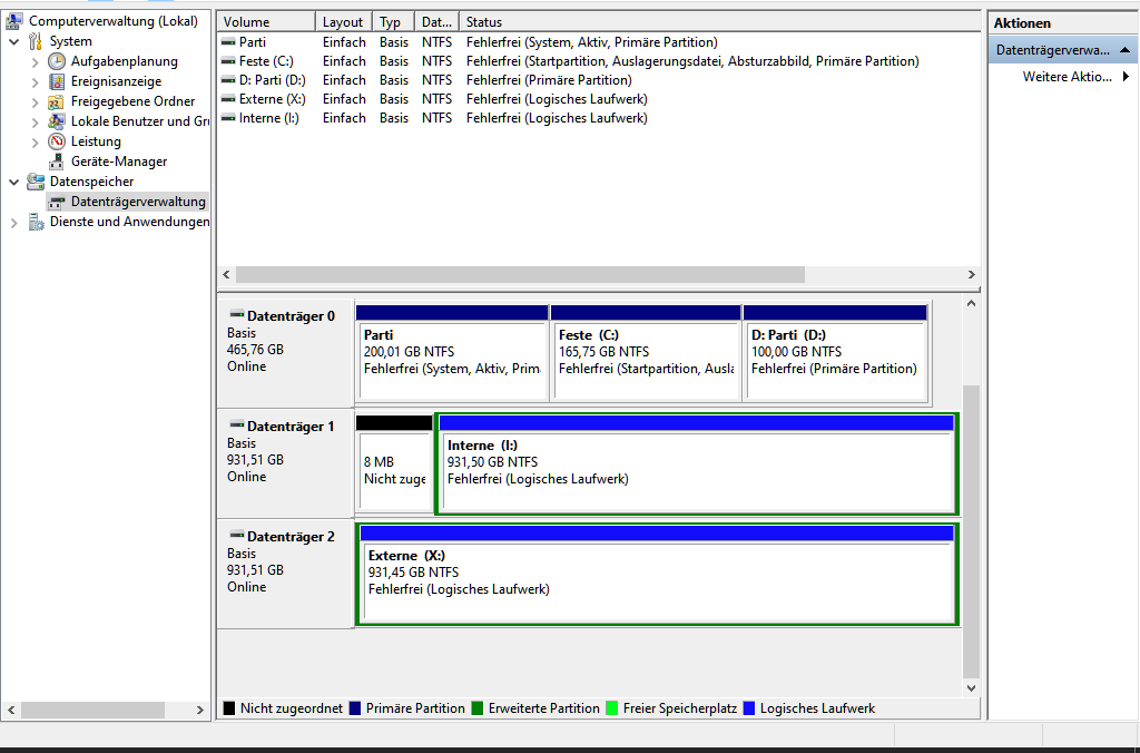 Mach doch mal einen Screen von der Datenträgerverwaltung und alles groß aufziehen, dann sieht man alles.