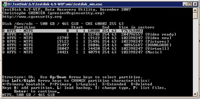 Nun habe ich im Internet gesuch, was ich machen kann und bin auf dieses tolle Forum gestossen. Habe viel gelesen und mir dann Testdisk runtergeladen und gestartet.
