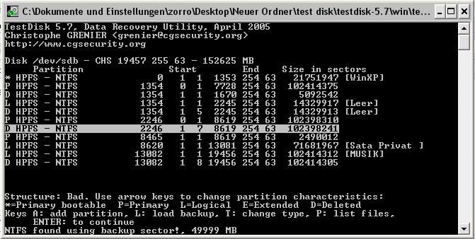 Hab hier mal mit Testdisk mal ein Screen gemacht, Fiona Help