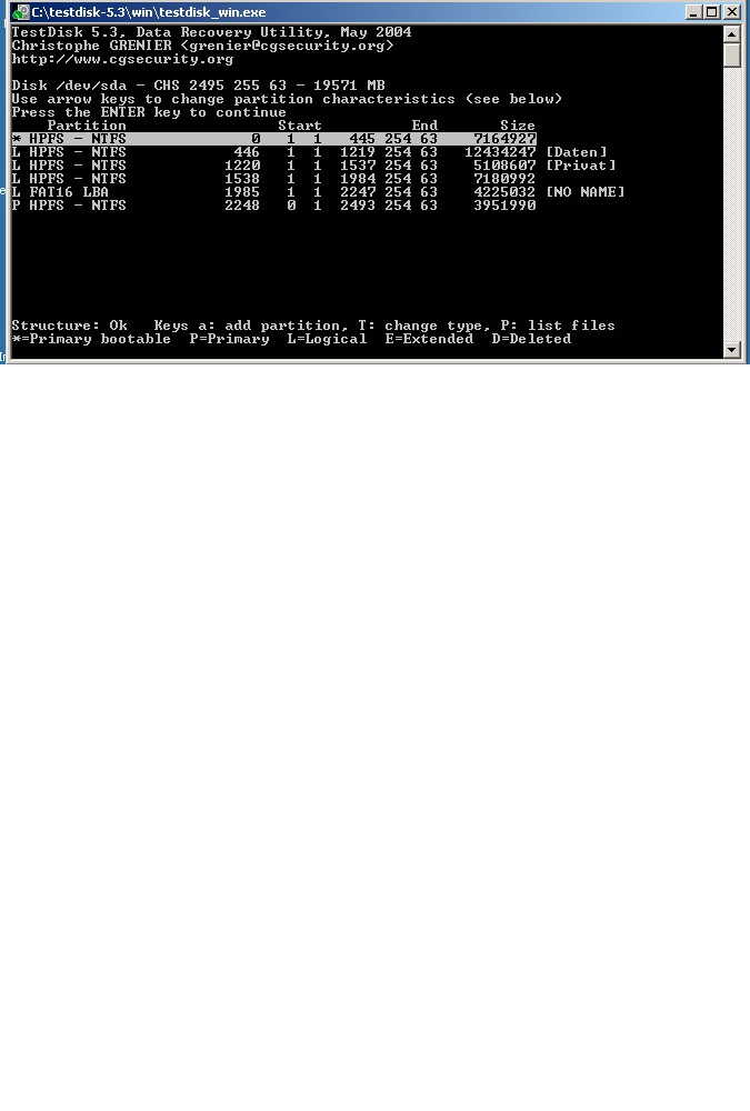 Bei Testdisk kann ich sie aber noch sehen habe einen kleinen Screenshot bei gefügt.