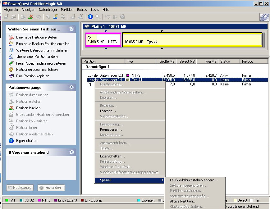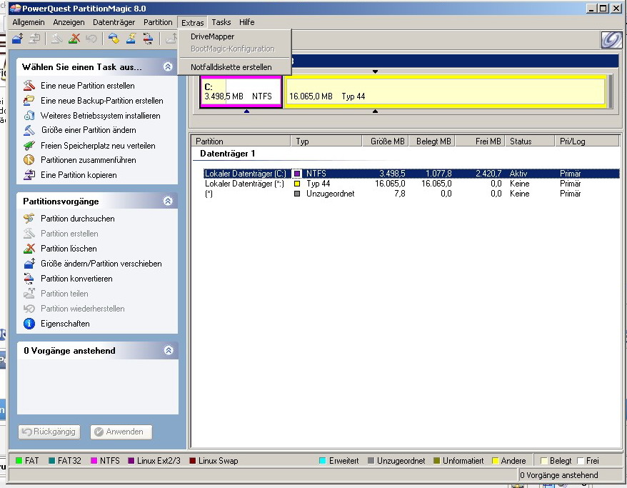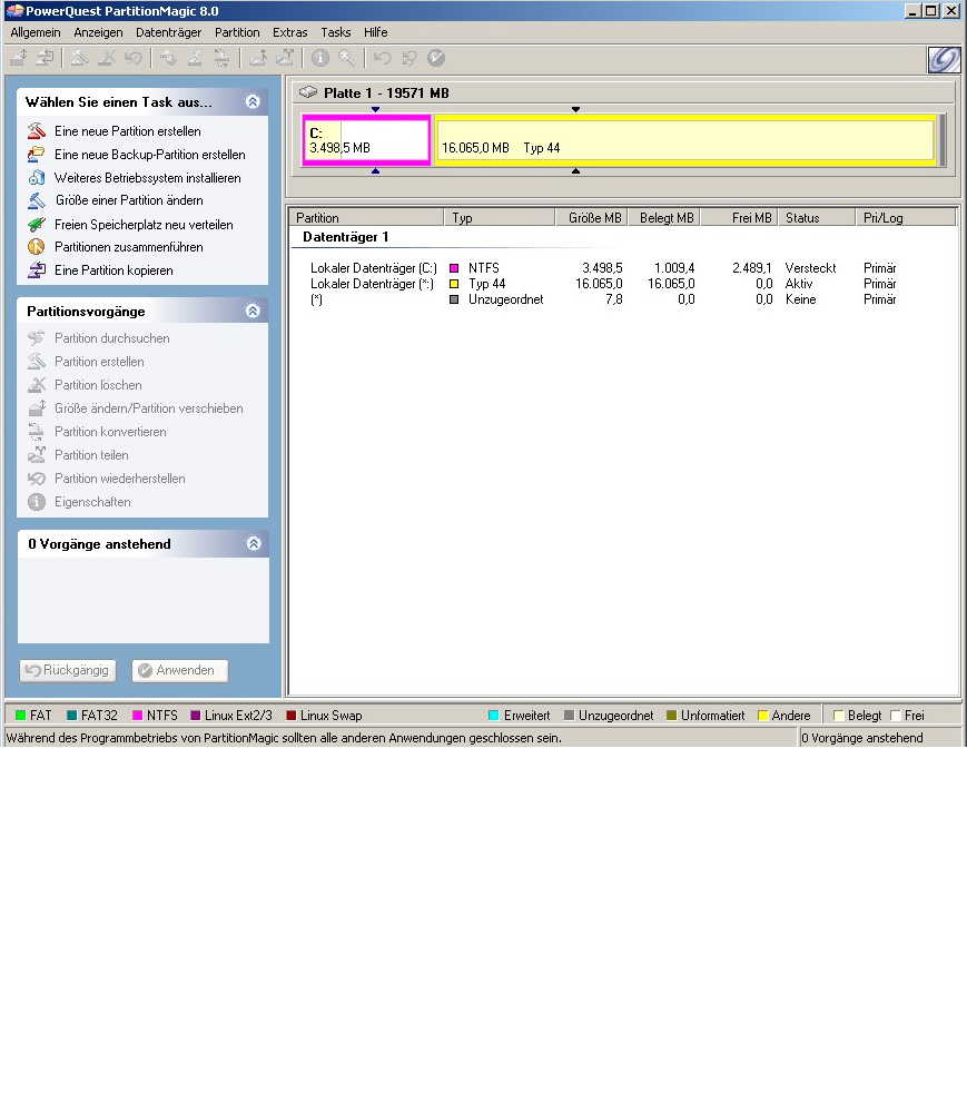 Bei PartitionsMagic benötige ich das gelbe