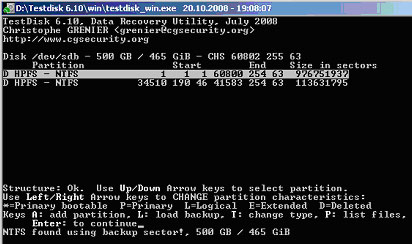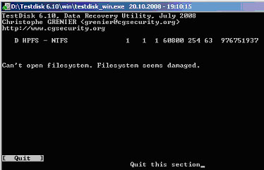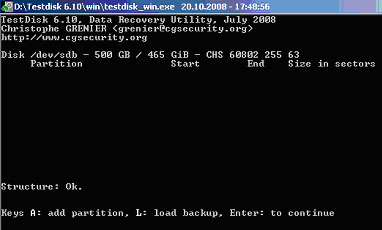 Da weiterhin nichts geht verwende ich Testdisk 6.10