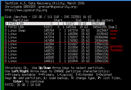 Ich habe mir Fionas sehr interessantes Tutorial zu Testdisk und auch mehrere relevante Forenbeiträge durchgelesen aber komme nicht mehr so richtig weiter: