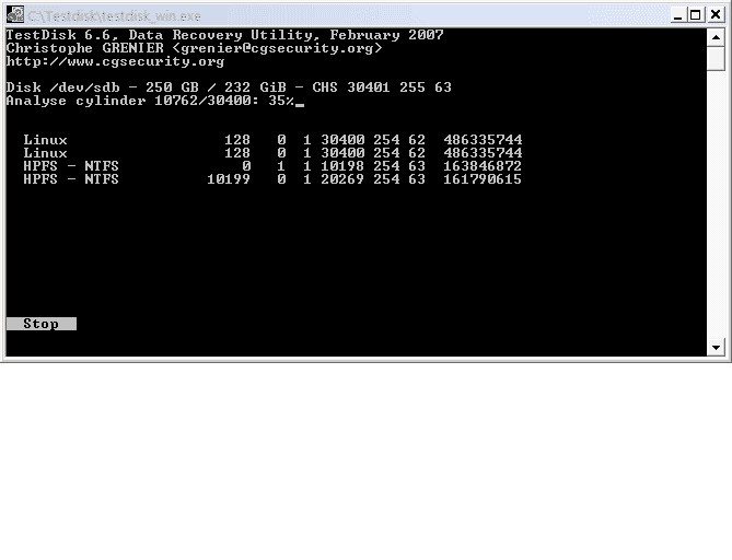 endlich zu dem Programm Testdisk gekommen. Dort wurde mir angezeigt, dass die Platte