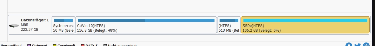 Besagte 5 oben wurden um eine 6. ergänzt,von 125 auf eine 500er (falsche 500). >350GB (echte) weiterer Speicherraum damit C nicht ausufert.