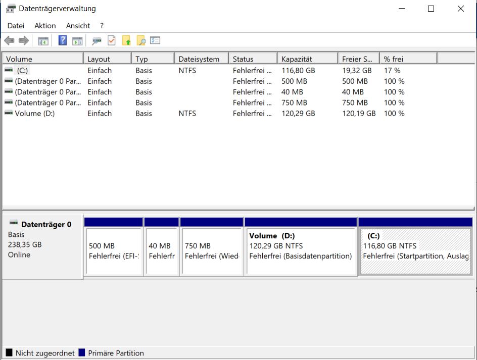 Mit Windows Bordmitteln wird das dann schwierig, deshalb kann man sowas nutzen wie den Aomei Partition Assistant