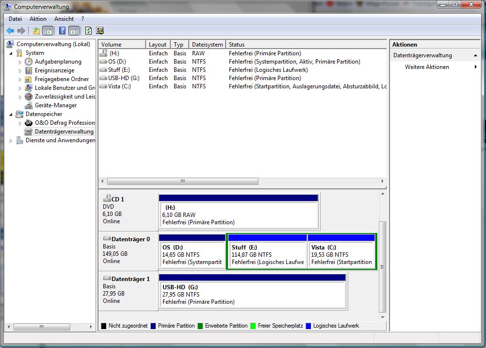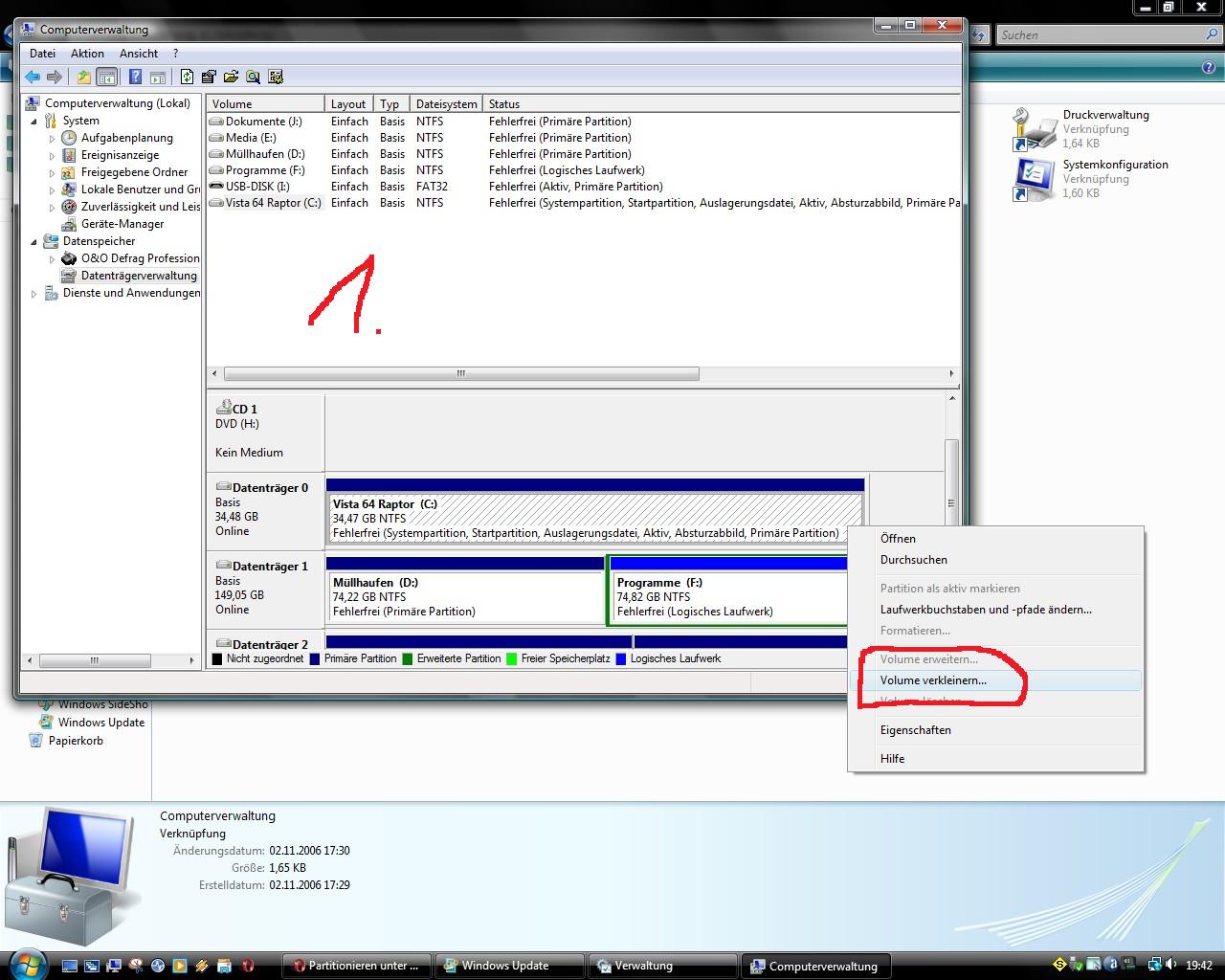 ich hab ne 320 GB Festplatte auf der Vista x64 drauf ist. Sie ist noch nicht Partitioniert. So jetzt will ich ein zusätzliches Laufwerk bzw Partition um meine Daten zu sicher. Brauch ich da ein Programm und welches wo unter Vista läuft oder kann das Vista jetzt auch schon selber?