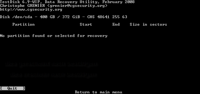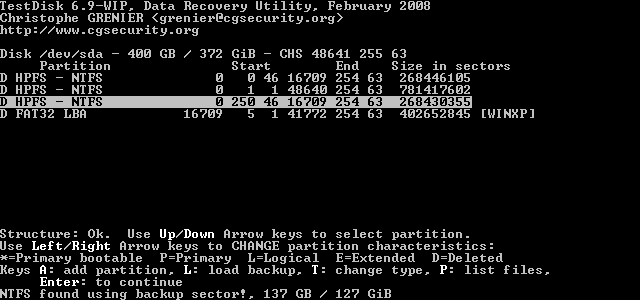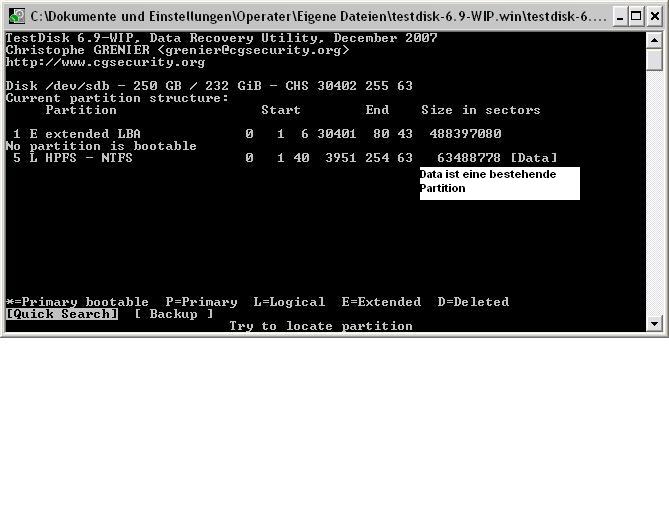 nun hab ich schon einige tools laufen lassen, aber leider ohne erfolg ! bin akutell dabei, die platte mit testdisk zu prüfen und wollte gern wissen was ich noch tun kann, um an die daten der verlorenen partition zu gelangen oder vielleicht sogar im bestfall, die gesamte partition wiederherzustellen ????