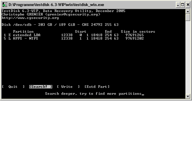 -> Testdisk nochmal gestartet