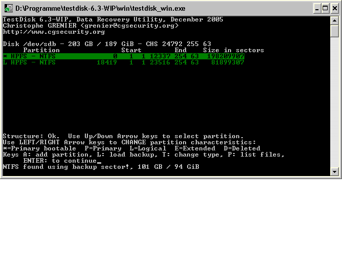-> im Prinzip alles was Testdisk so wissen möchte -> bzw. an Infos liefern kann