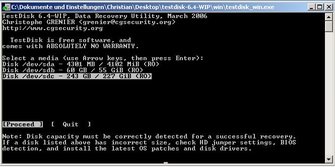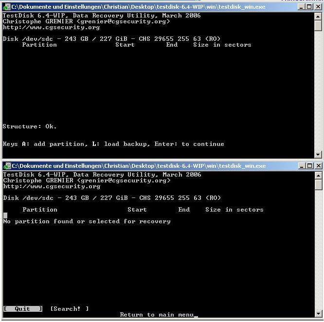 Markiere die Partition wenn die gefunden wird mal und drücke p ob du deine Daten oder eine Fehlermeldung siehst.