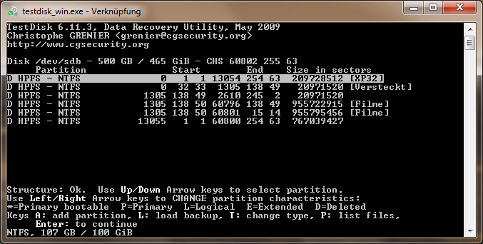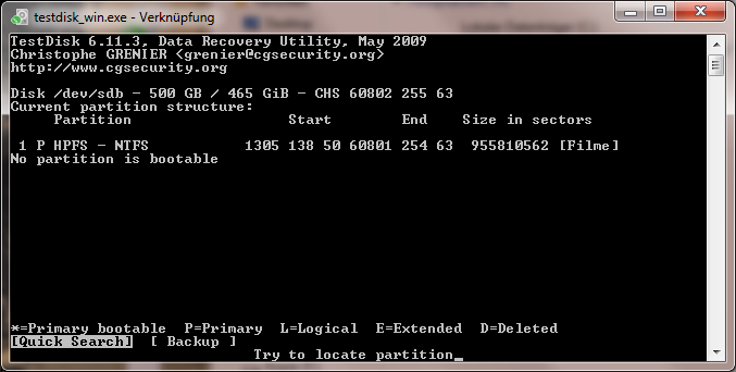 Nun versuche ich mit Testdisk noch meine Daten zu retten, komme dabei aber nicht wirklich weiter.