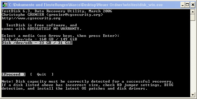 wenn ich nach proceed wieder search anwähle, bleibts bei der einen Partition.