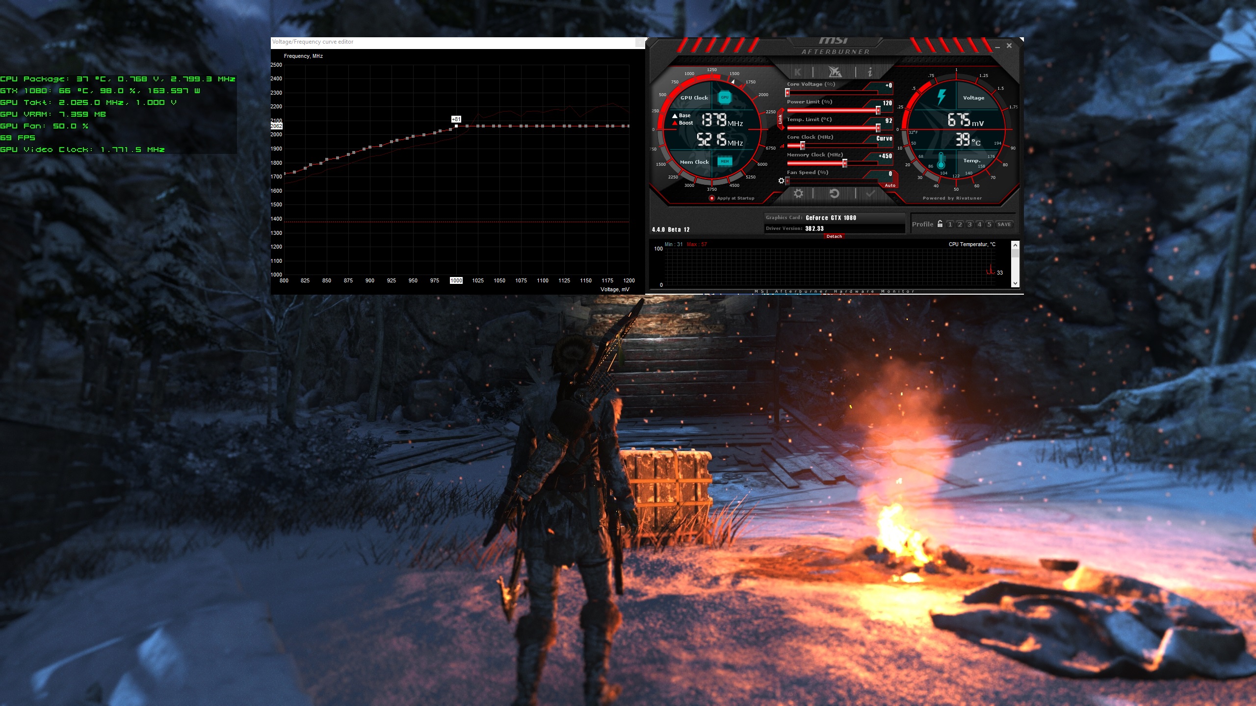 0,875V @ 2050MHz ist bisher überall stabil außer in Rocket League und anderen Games wo oft der Takt gewechselt wird weil er da ab und zu beim Lastwechsel abstürzt. Ich schätze es liegt daran das in einem niedrigeren Takt irgendwo zu wenig Spannung anliegt da man mit der Curve ja auch in den niedrigeren Stuffen die Spannung reduziert. Da ich keine Lust hatte das ganze 100mal zu verändern und zu testen läuft die Karte einfach mit 0,900V und fertig.