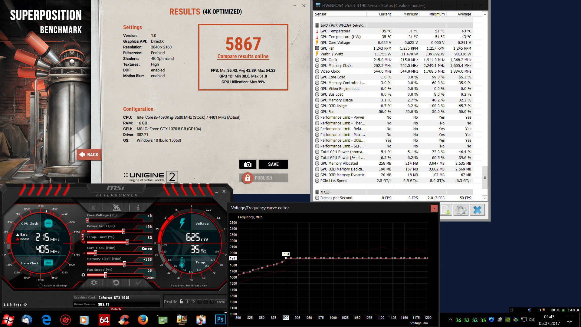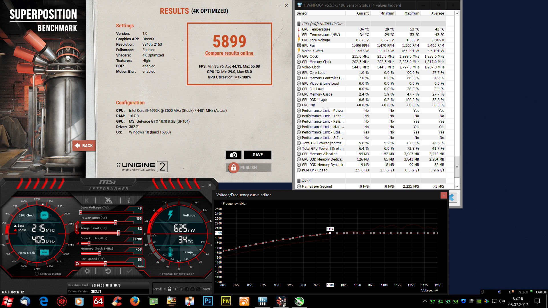 Letztlich ist immer wichtig was am Ende rauskommt, hier mal mein Curve Profil mit 1911 MHz GPU Takt und einer Spannung von 0,900 Volt mit einem Verbrauch von 139 Watt und dennoch stolzen 5.862 Punkten im Superposition 4K Optimized!