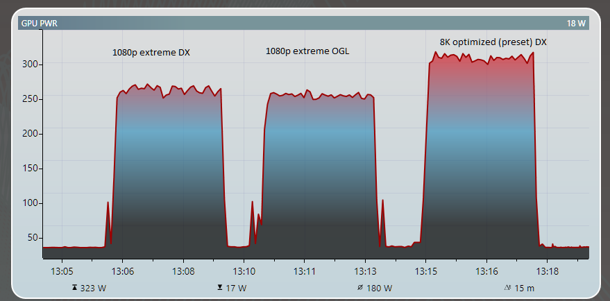 Leider hat hier die GPU zum Teil sehr stark gedrosselt da das PL erreicht wurde.