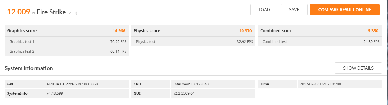 Mein zweit PC mit 1230v3 und GTX1060 Gainward GS läuft bei 2088Mhz@1V und RAM 4600MHz und haut dabei einen Graphics score von 14966 raus. RAM ist zeimlich am Ende bei der GPU geht noch was, habs aber weiter nicht getestet.