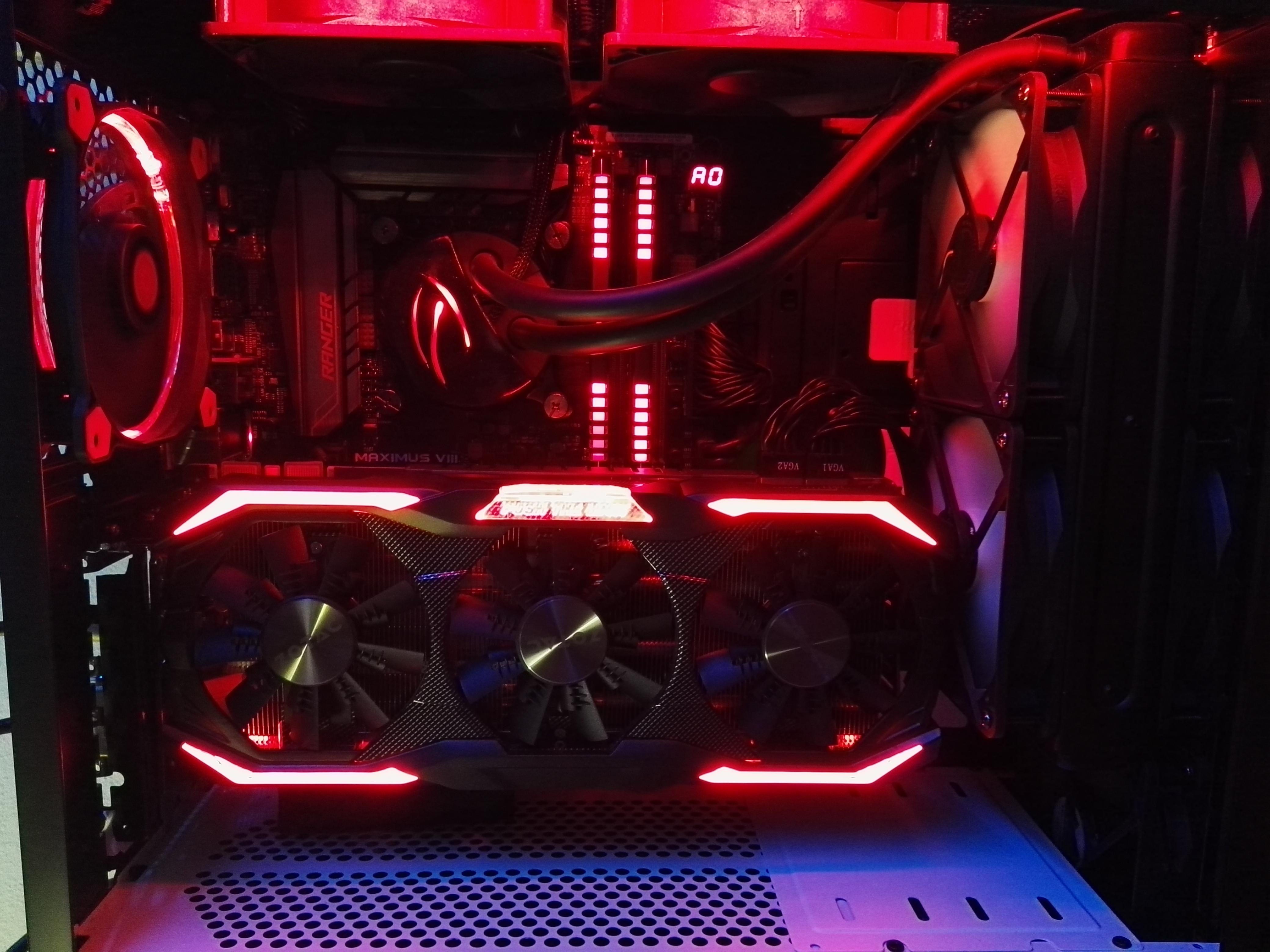 Erstmal Danke für die Bilder und die Erklärung, was Du gemacht hast bezgl. der Grafikkarte senkrecht. Mich hat das einfach interessiert, weil ich auch schon mal mit dem Gedanken gespielt habe, dies zu machen. Allerdings würde es so wie bei Dir, bei mir nicht funktionieren, da ich ja unter der Grafikkarte noch eine TV Karte verbaut habe, somit müsste ich die Grafikkarte weiter vorne platzieren, was aber Theoretisch möglich wäre. Aber so nah dann an meiner Glasscheibe [Corsair Crystal 570X RGB], ob das dann so toll aussehen würde, ganz zu schweigen, ob die Grafikkarte dann noch ausreichend Luft über die Lüfter ziehen könnte.