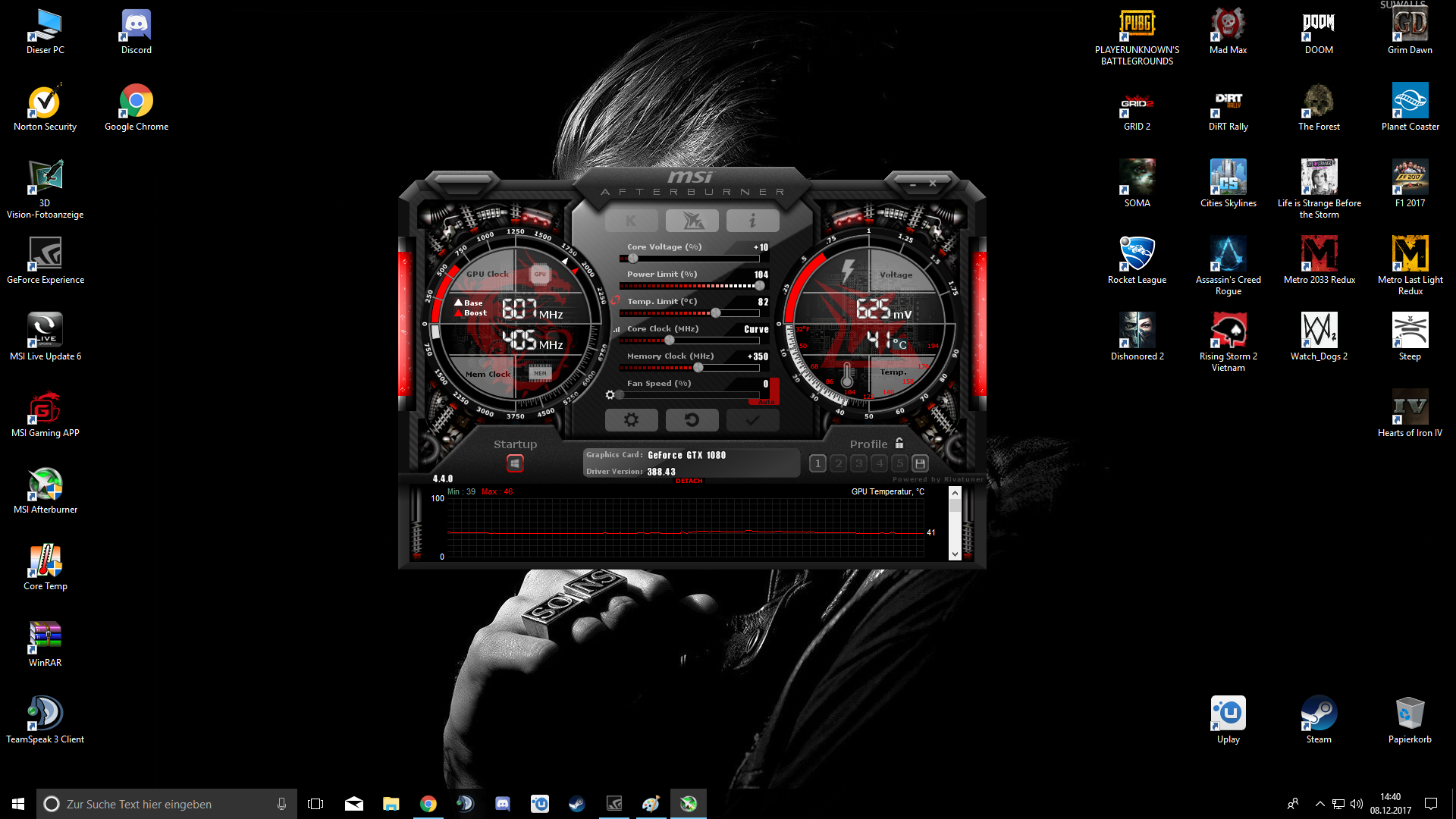 Meistens bringt es aber eh nicht so viel die GPU hoch zu prügeln da die 1080 ein regelrechter Speicherkrüppel ist, nur 256 bit usw... Benchmarks schlagen zwar meistens etwas darauf an bei höherem GPU-Takt aber in Games merkt man davon nicht viel.