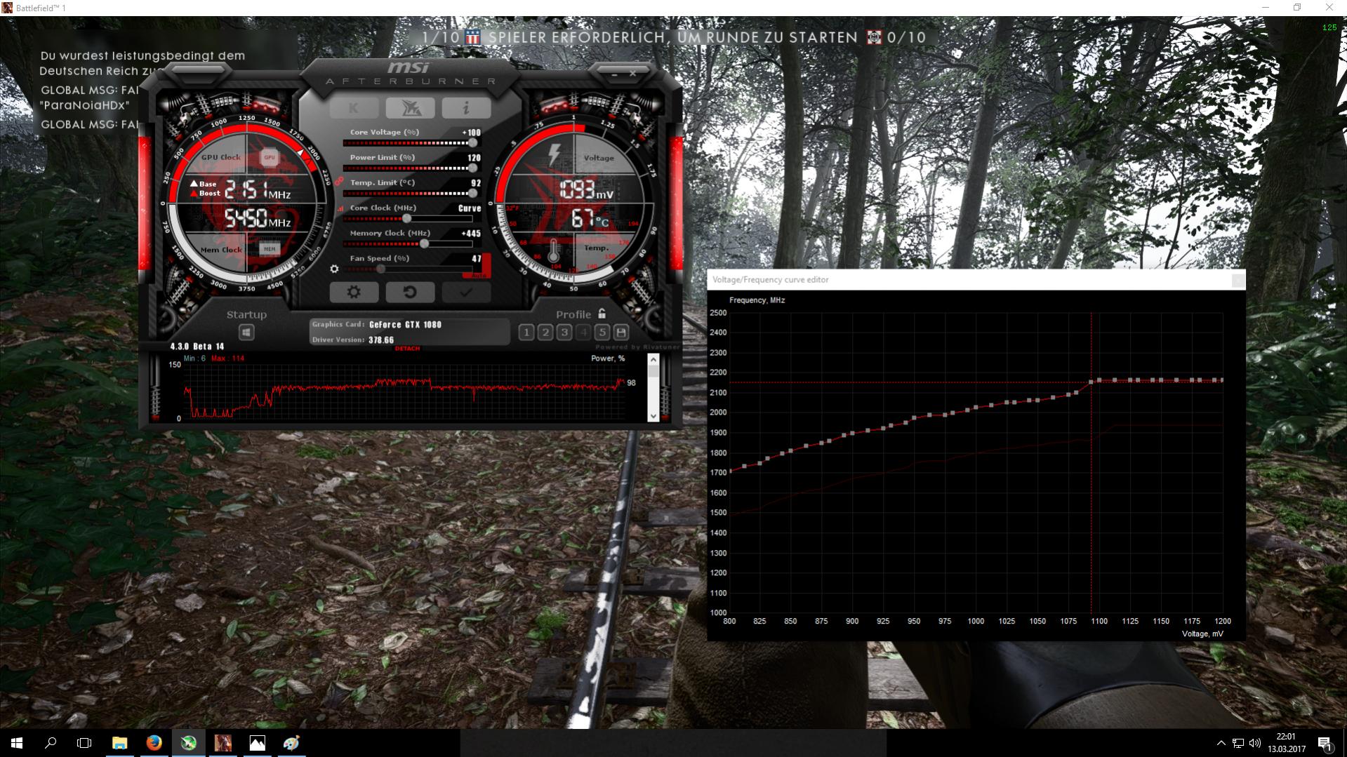 Ich könnte auch 2100 MHz+ machen bei Full HD, 60 FPS Lock und 15°C