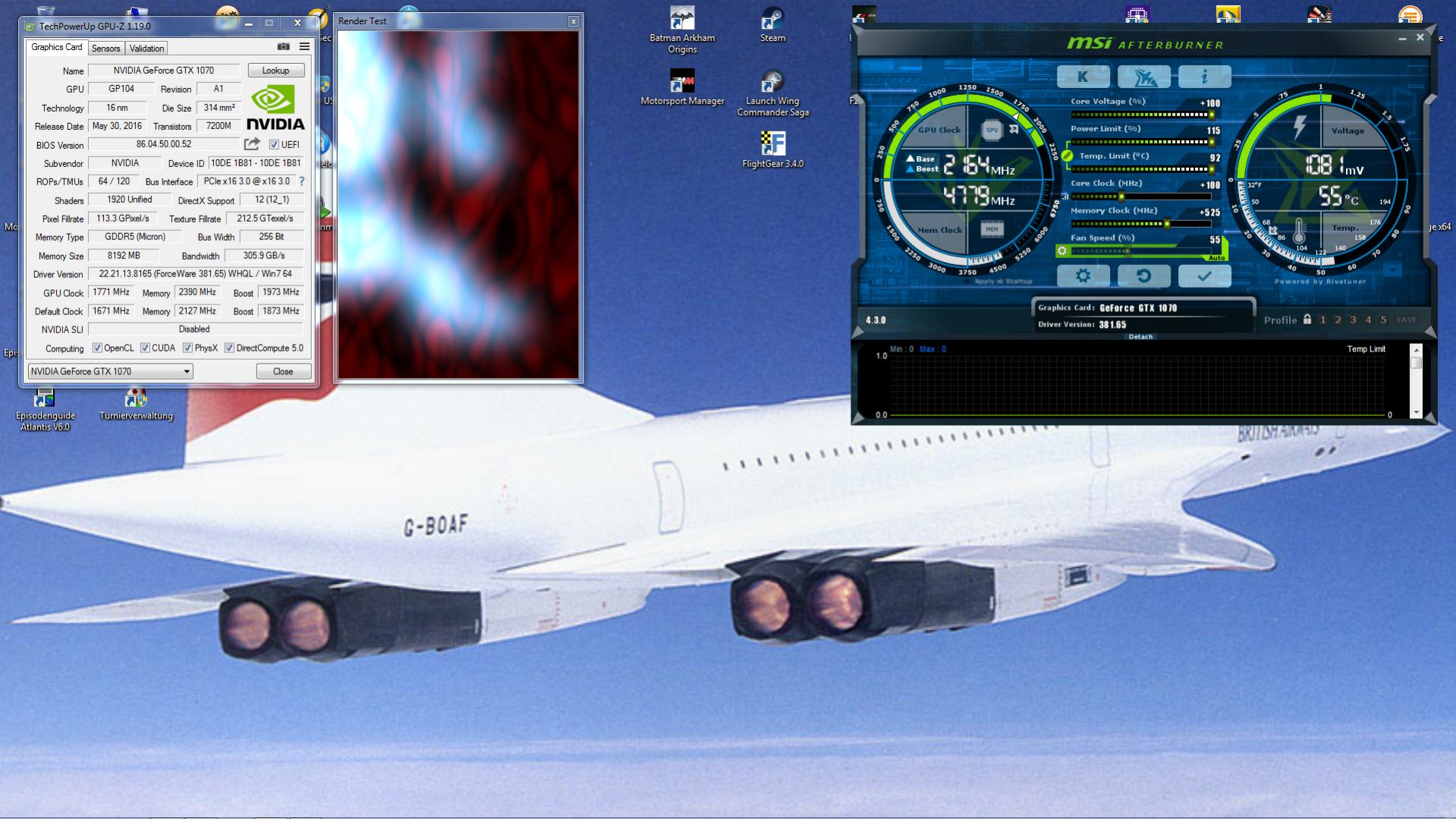Okay, 2GHz/5.5GHz, ist wohl doch das Ende der Fahnenstange. Bei mehr Core startet Superposition nicht mehr. Bei 5.6GHz Speichertakt läuft alles stabil durch, aber mit deutlich weniger FPS.