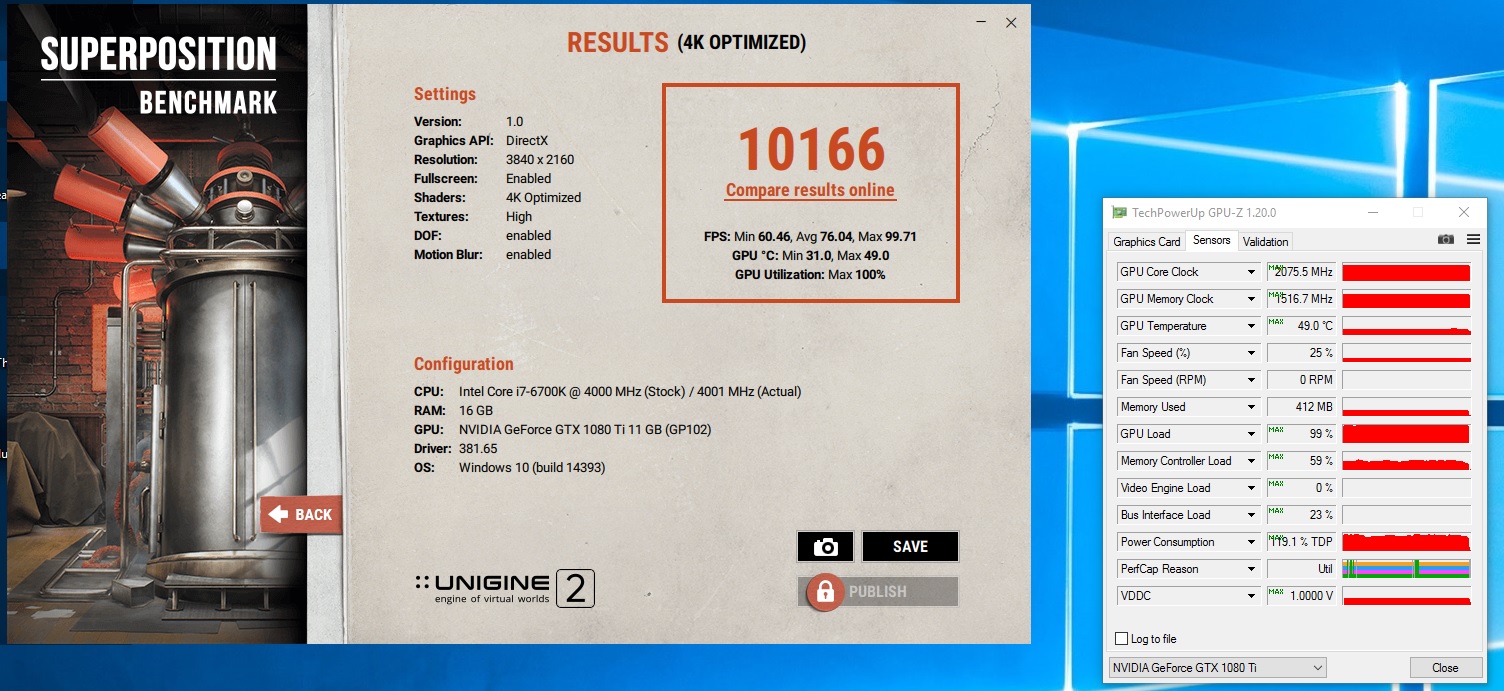 Power Limit wurde nicht verändert [100%], hierbei ging es mir nicht um irgendwelche Highscore Punkte, sondern vielmehr um die Werte der Grafikkarte und ob die Grafikkarte ins Power Limit läuft. Habe daher GPU-z Sensor Daten in doppelter Ausführung mitlaufen lassen, mit der Einstellung Minimal und Maximal. Das Curve Profil lief optimal durch ohne Eingriff durch das Power Limit!