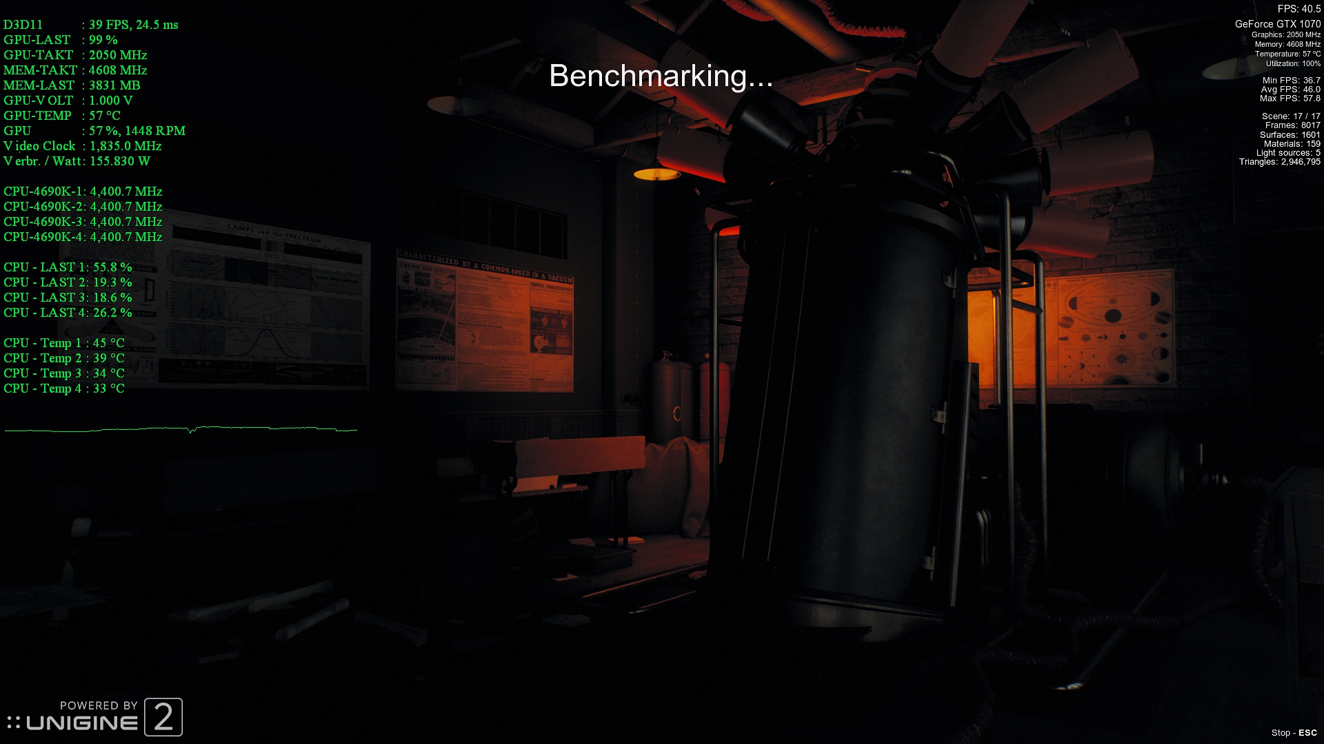 Habe mal den Superposition Benchmark mit 4K Optimized und einem Curve Editor Profil mit GPU-Takt 2076 MHz [Start] am Ende 2050 MHz / Speicher-Takt 4600 MHz / Video-Clock 1860,0 MHz [Start] am Ende 1835,0 MHz und einer Spannung von 1,0 Volt durchlaufen lassen.