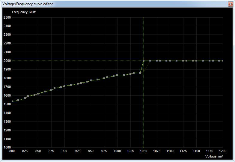 Die Karte läuft in der Zeit in der der Benchmark läuft immer mit 2000 MHz.