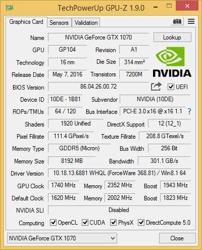 NVIDIA GeForce GTX 1070 video card benchmark result - Intel Core i7-6700K,MSI Z170A XPOWER GAMING TITANIUM EDITION(MS-7968)