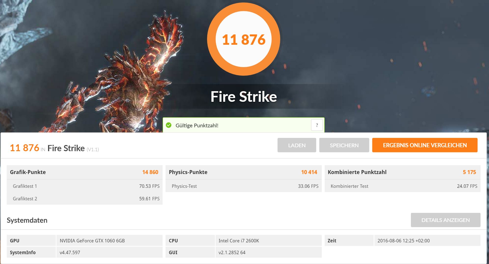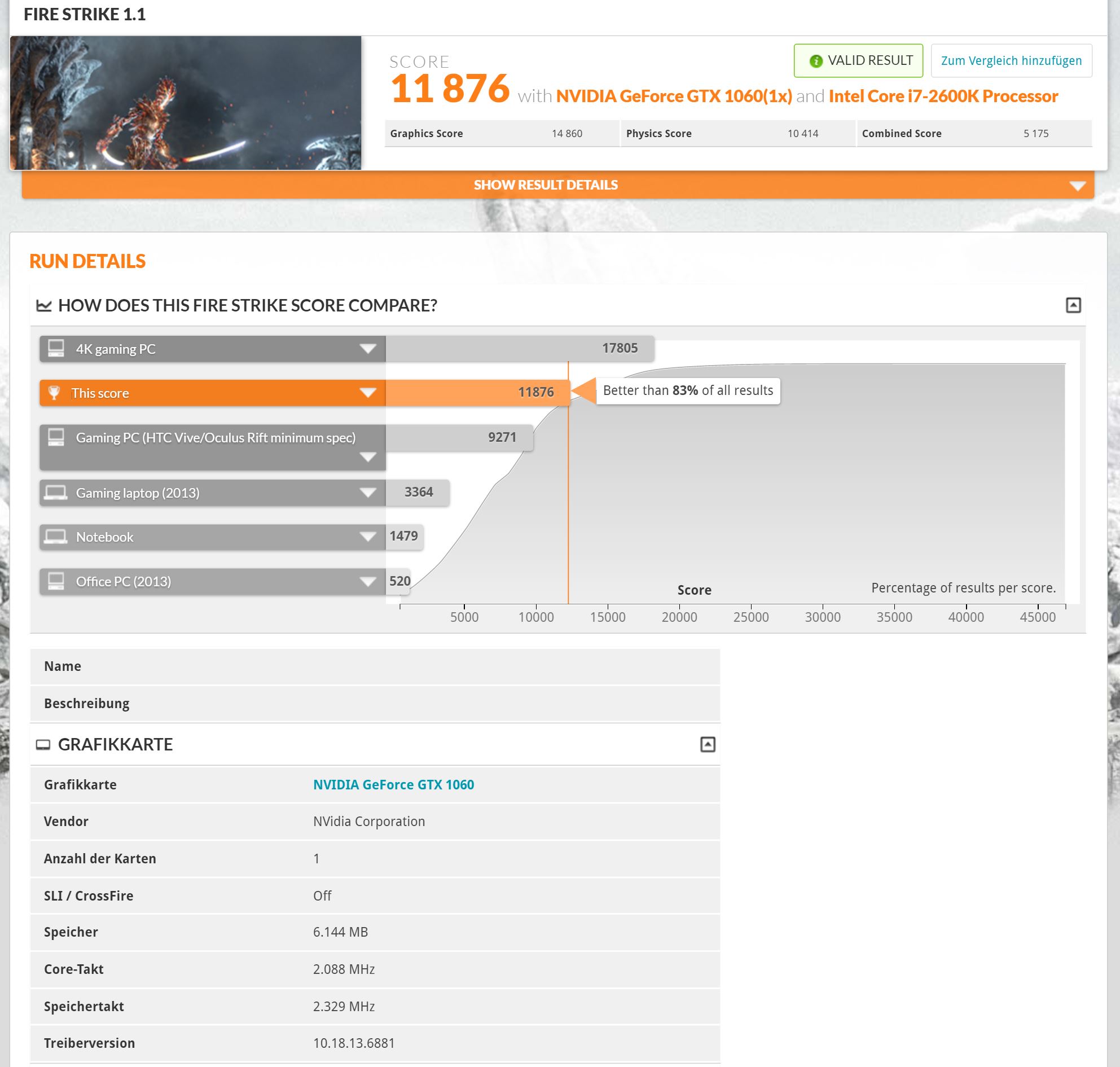 so, hier mal meine Ergebnisse jetzt mit meiner KFA2 1070 HOF: