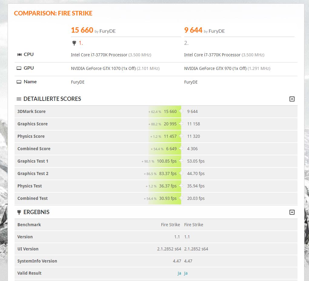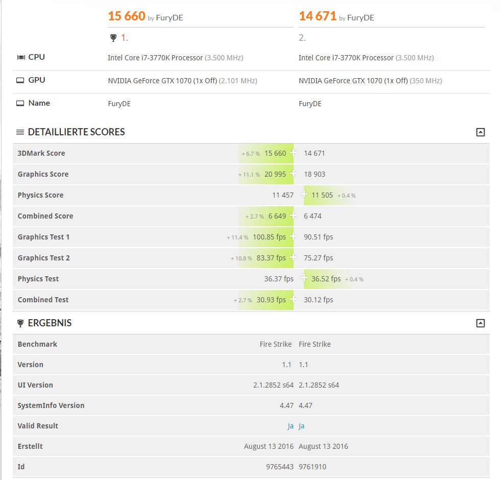 also ich hab definitiv bessere punkte nun im vally sowie firestrike.